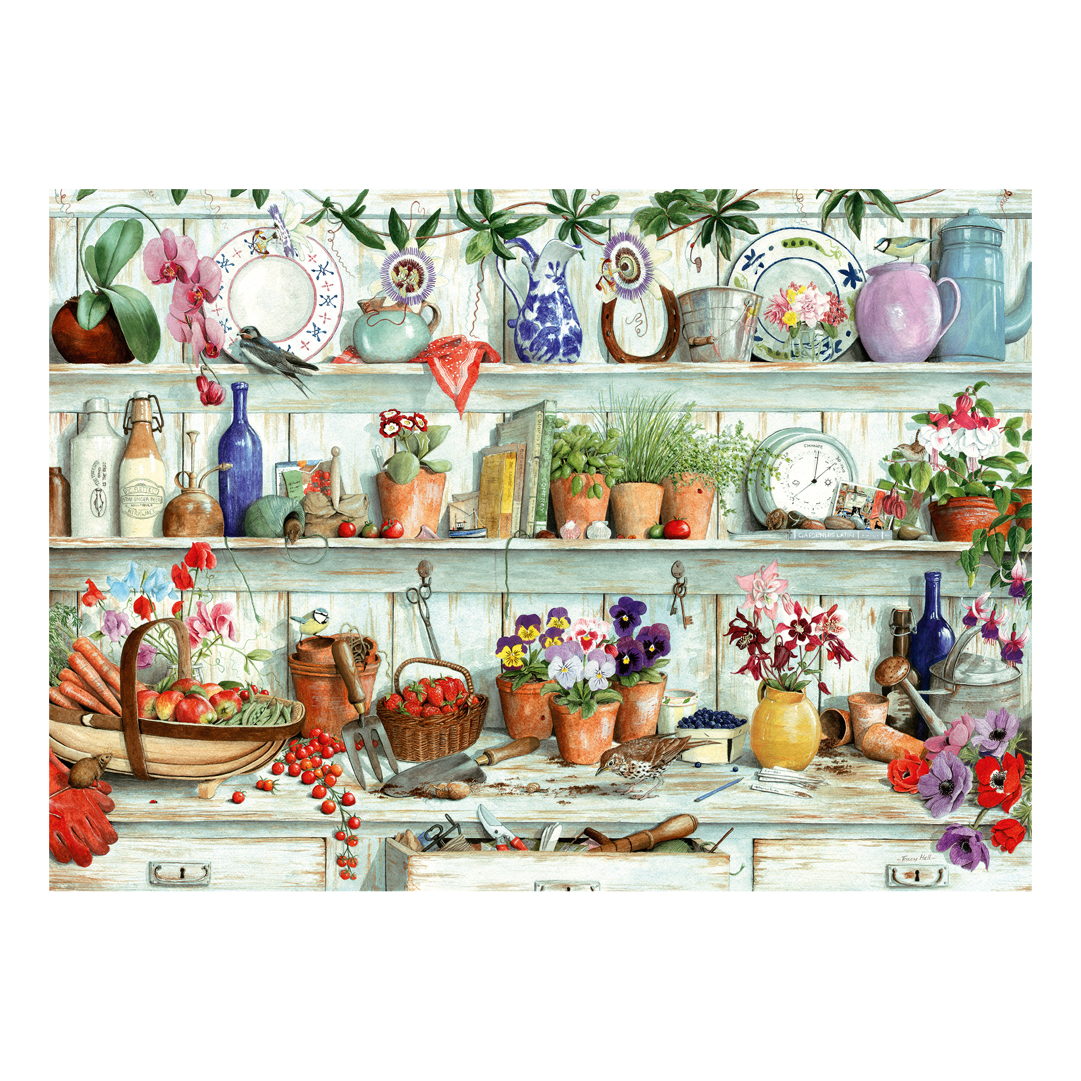 Ilustrowana przez niezwykłą artystkę Tracy Hall, układanka Posies & Produce 1000 zawiera piękną, szczegółową scenę, która urzeknie zarówno początkujących, jak i doświadczonych fanatyków puzzli!