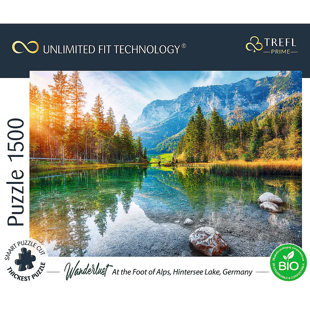 Puzzle z serii Trefl Prime Unlimited Fit Technology składające się z 1500 elementów są dedykowane prawdziwym miłośnikom układanek. Puzzle przedstawiają Jezioro Hintersee leżące w Niemczech u podnóża Alp. Po ułożeniu powstanie obraz o wymiarach 850x580 mm.